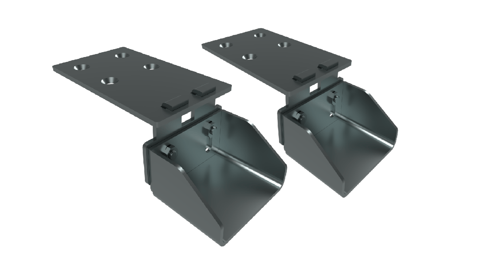 Hinged flanges for 80x80 mm beam, mounted to pool deck