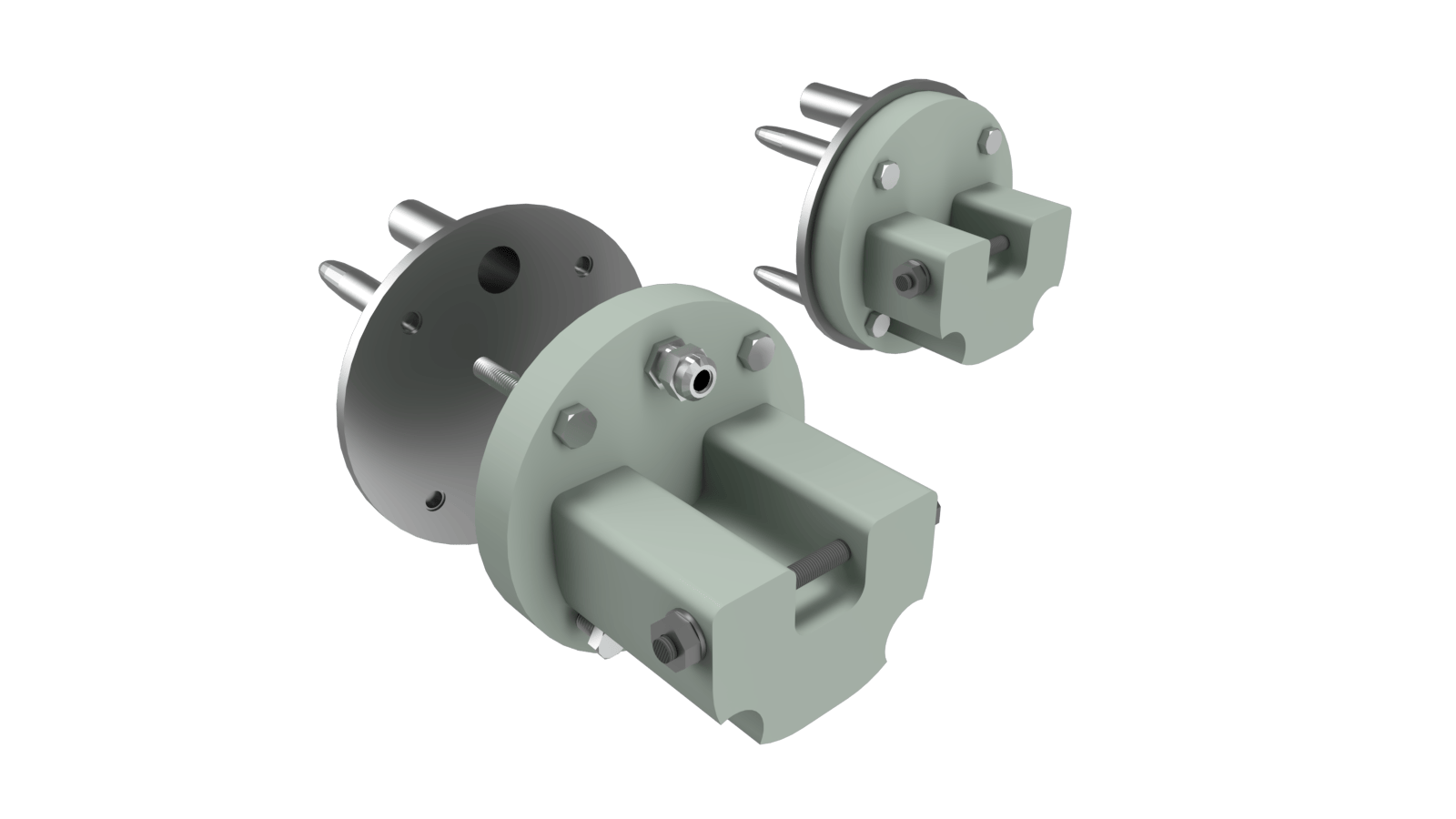 Complete stainless steel 316L flange set with cable cover, shaft axis at 44–115 cm (customizable).
